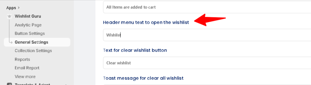 Customize your storefront experience by editing text and language translations in Wishlist Guru. You can easily update button labels, wishlist messages, and notifications to match your store branding and preferred language.